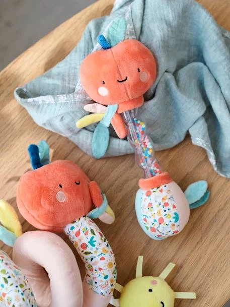 Un joli bâton de pluie qui émerveillera les enfants avec le bruit des petites billes qui s’écoulent quand on le secoue ! Un jeu d’éveil qui fait toujours son petit effet, surtout dans cette adorable version doudou Croque la vie !