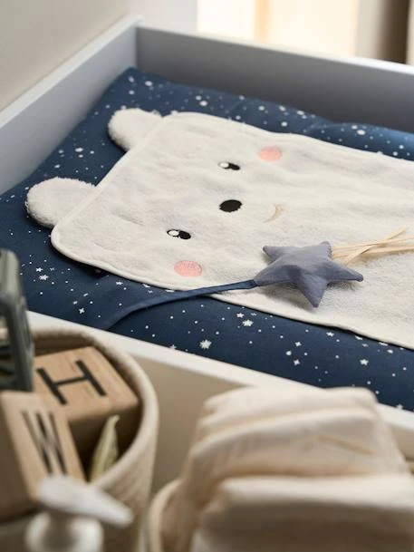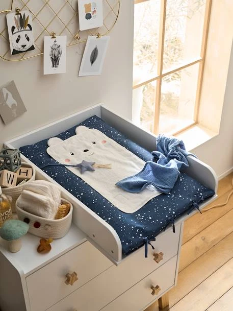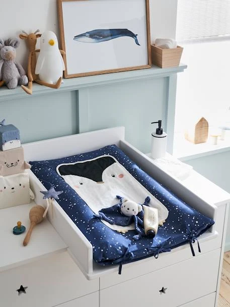 Bébé va adorer être changé sur ce superbe matelas à langer ! Confortable et décoré d’un ours et d’un pingouin et d’étoiles argentées, il transforme le moment du change en moment magique !