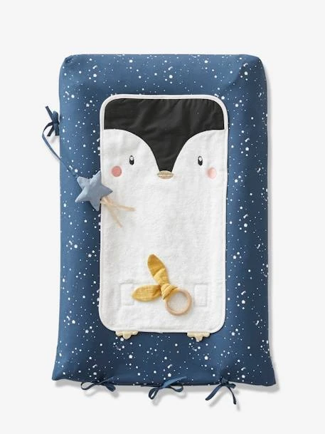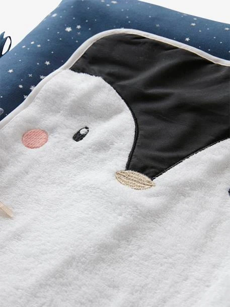 - Tapis à langer amovible avec pingouin et ours brodés en éponge 100% coton maille indéfilable, doublé PVC, avec scratch