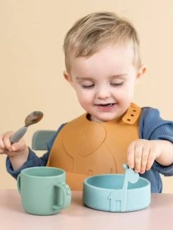 Lot De 2 Bavoirs Avec Récupérateur DONE BY DEER Peekaboo Eléphant En Silicone Vert Clair + Vert Foncé – Done By Deer