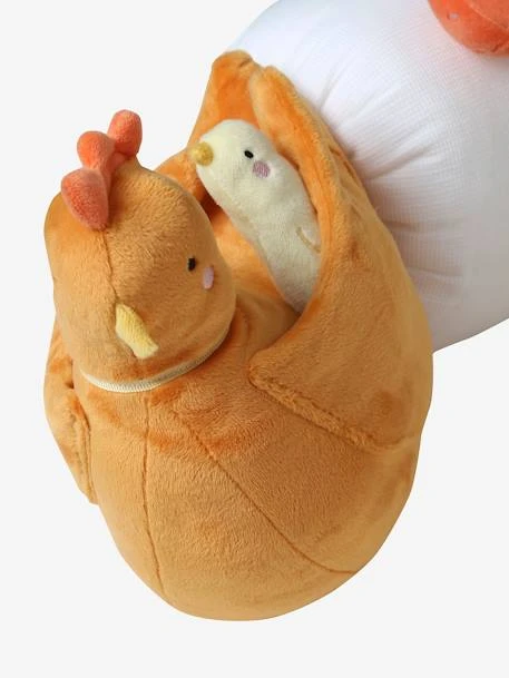 Une jolie poule transporte derrière elle de petits boudins colorés avec de chouettes activités ! Miroir, anneau de dentition, rubans… bébé va pouvoir stimuler ses sens en s’amusant !